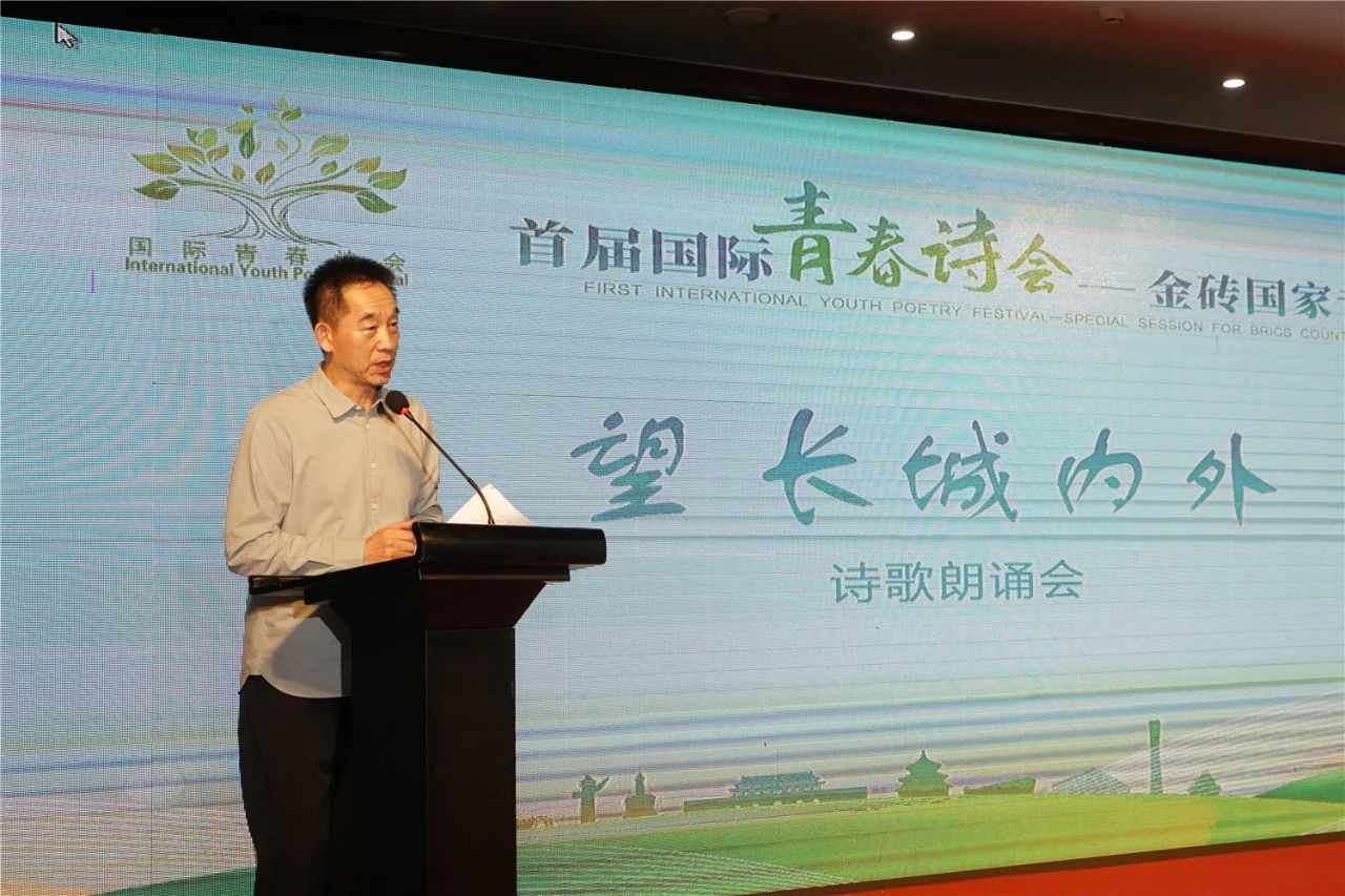 诗歌与长城相遇,青春予文明新生。随着“首届国际青春诗会——金砖国家专场”继杭州活动后又来到北京,一场以“望长城内外”为主题的诗歌朗诵会如约举行。7月23日下午,来自金砖十国的72名诗人相聚于北京慕田峪长城,朗诵自己的原创诗歌作品,为这里注入了青春的活力和新的时代内涵。中国作家协会党组成员、书记处书记施战军出席活动并致辞。中国作家协会书记处书记邓凯,诗刊社副主编王冰,以及参加首届国际青春诗会的诗人等参加。朗诵会由诗刊社编辑部副主任彭敏、编辑赵四共同主持。