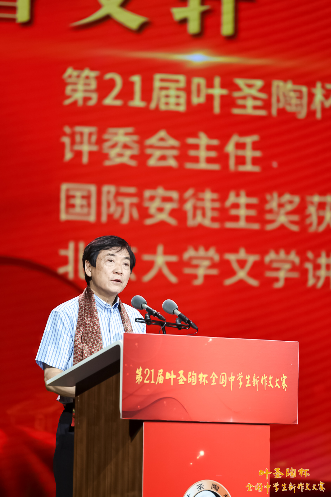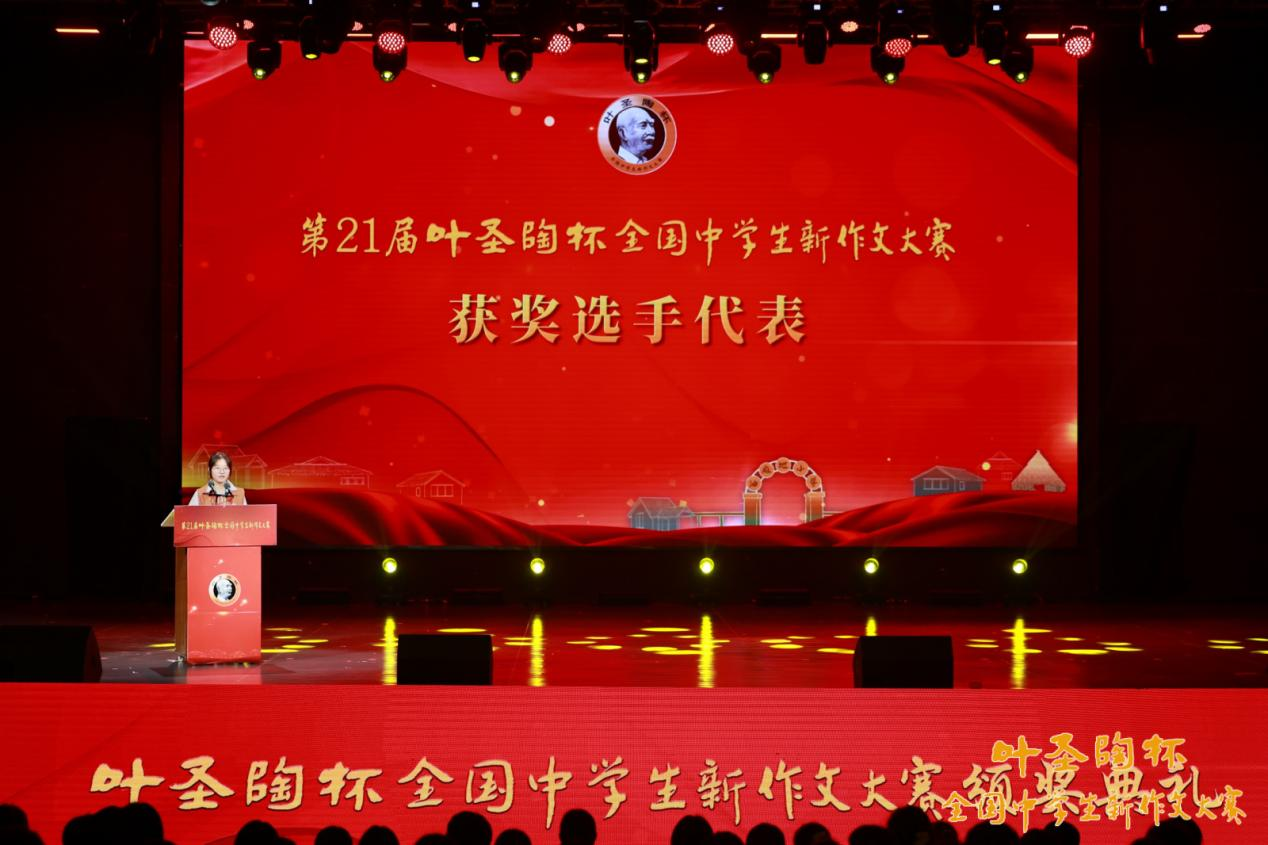 7月28日,第21届叶圣陶杯全国中学生新作文大赛颁奖典礼在盐城市草房子景区隆重举行。文学界、教育界、新闻出版界的专家和中共盐城市各级支持单位的领导出席,获奖师生代表近四百人参加了颁奖典礼。