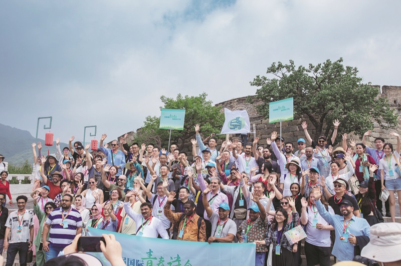 7月23日,北京慕田峪长城。诗人们登上长城,极目远眺——长城,宛如无尽的旋律,流淌在苍翠的群山之上,他们激动地在长城上合影