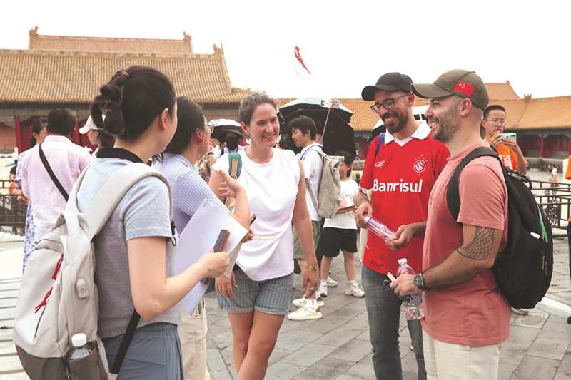 7月24日,北京故宫博物院。诗人们漫步在金瓦红墙间,思接千载,逸兴遄飞,亲身感受其恢宏与磅礴,加深了对中华优秀传统文化的认识和了解