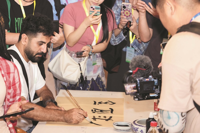 7月20日,浙江省非物质文化遗产馆。诗人们兴致勃勃地体验着中国传统文化