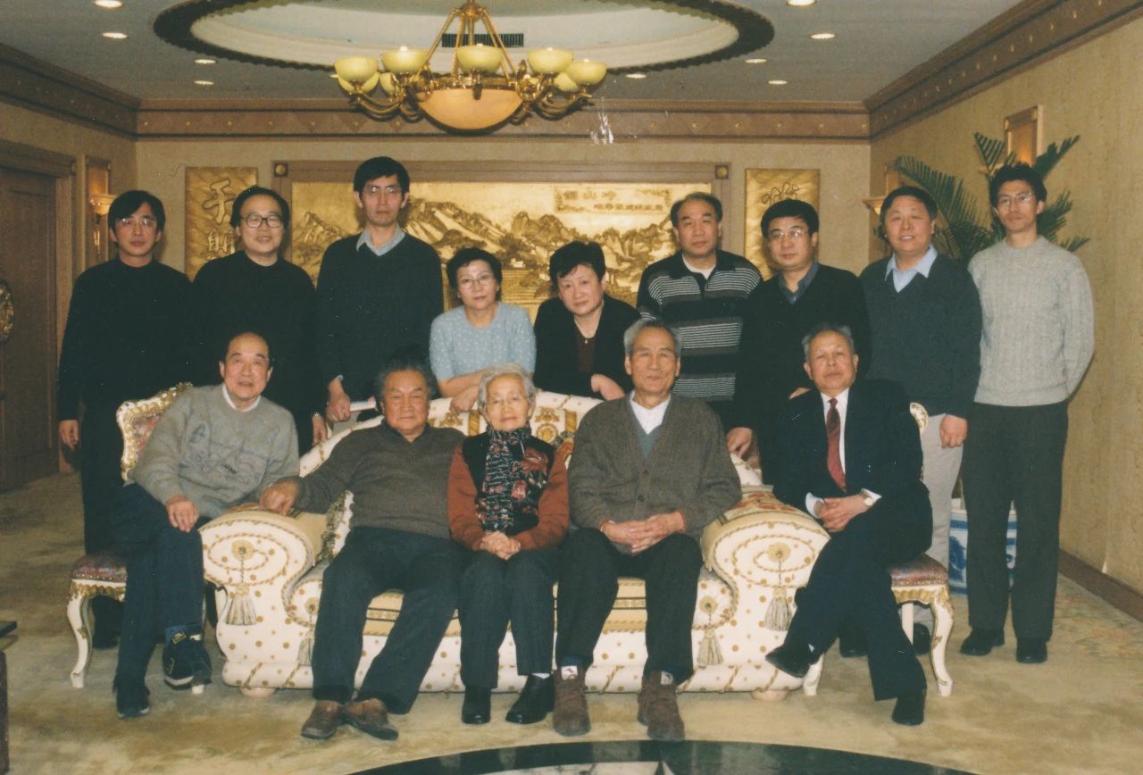 2003年1月,诗友聚会,前左:邵燕祥、蔡其矫、北岛母亲、牛汉、谢冕,后左:苏历铭、吴思敬、北岛、徐晓、史保嘉、林莽、张洪波、刘福春、李占刚