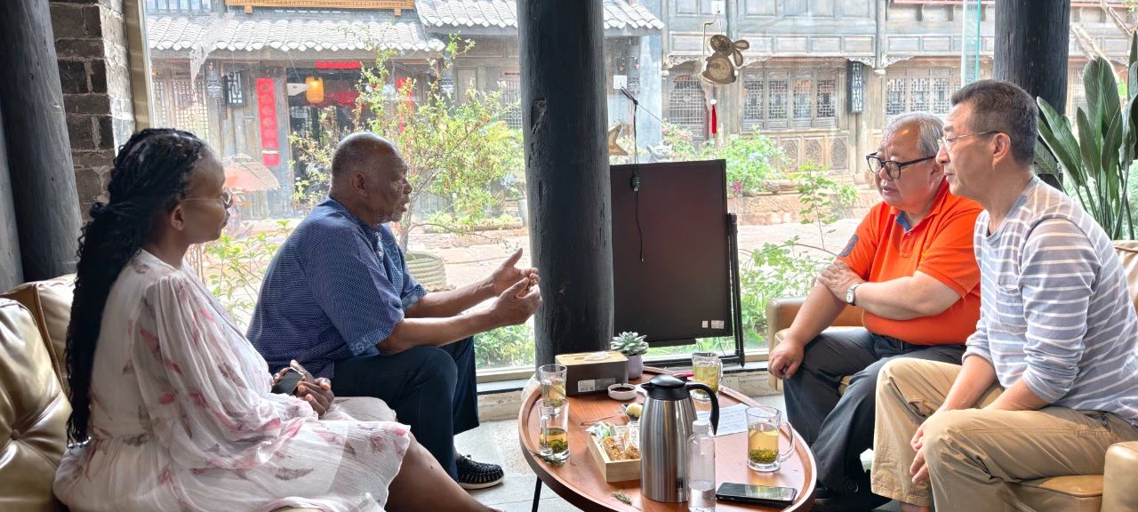 塞罗特:我感觉到您是一位非常有创造力的人。我们在参观您的书画展时,我能感受到您一直在努力解读您的民族的过去和现在。通过这种方式,您向我们分享了一个非常重要的写作原则。您带我来到您的祖屋,我也想对您说,南非有句谚语,人之所以为人,是因为他在人群中。所以当我在博物馆中漫步时,我开始了解您。回到祖先之地这个理念,我有两个原则:人总是回到他的祖先之地,因为这里有他的祖先。一个人常常回到祖先之地,但却从不会忘记现实和未来。我有一种感觉,在任何时候,我们都面临着比自己的现状更为广泛的挑战。我们总是受到挑战,就比如说,我来自非洲,却来到中国。我听到过人们对您的作品的解读,也感觉到您所表达的东西跟我在非洲大陆所表达的东西有内在的联系,这意味着我们两人有着共同的以人为本的原则。