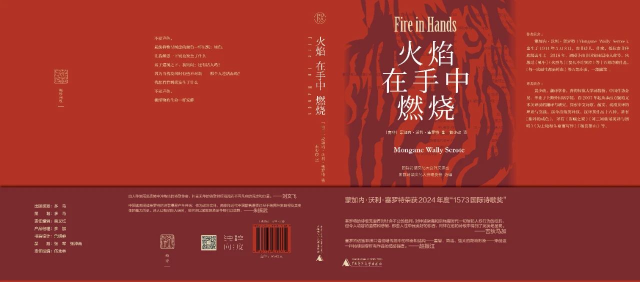 9月11日,蒙加内·沃利·塞罗特大凉山之秋诗歌之旅一行,在诗人吉狄马加陪同下,前往泸州参加“1573国际诗酒文化大会”,蒙加内·沃利·塞罗特作为2024年度“1573国际诗奖”获奖诗人,参加9月12日的颁奖典礼、“中非诗人圆桌会议暨诗歌的跨语言翻译与交流”等系列活动。由广西师范大学出版社·纯粹Pura出版的蒙加内·沃利·塞罗特第一部中文诗集《火焰在手中燃烧》在颁奖仪式上同步发行。