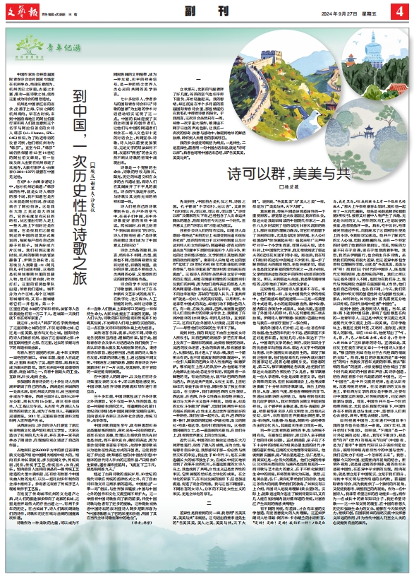 诗歌作为一种柔软的力量,可以成为不同民族间的文明纽带,成为一种友爱、和平的神奇信号,是一种团结全世界人类心灵的共同的美学语言。