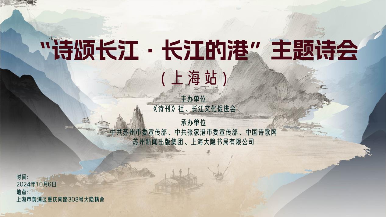 来自上海市内外的40余位诗人、作家将于10月6日齐聚上海,参加由《诗刊》社、长江文化促进会主办,中共苏州市委宣传部、中共张家港市委宣传部、中国诗歌网、苏州新闻出版集团、上海大隐书局有限公司、同济大学诗学研究中心等承办的“诗颂长江·长江的港”主题诗会(上海站)。