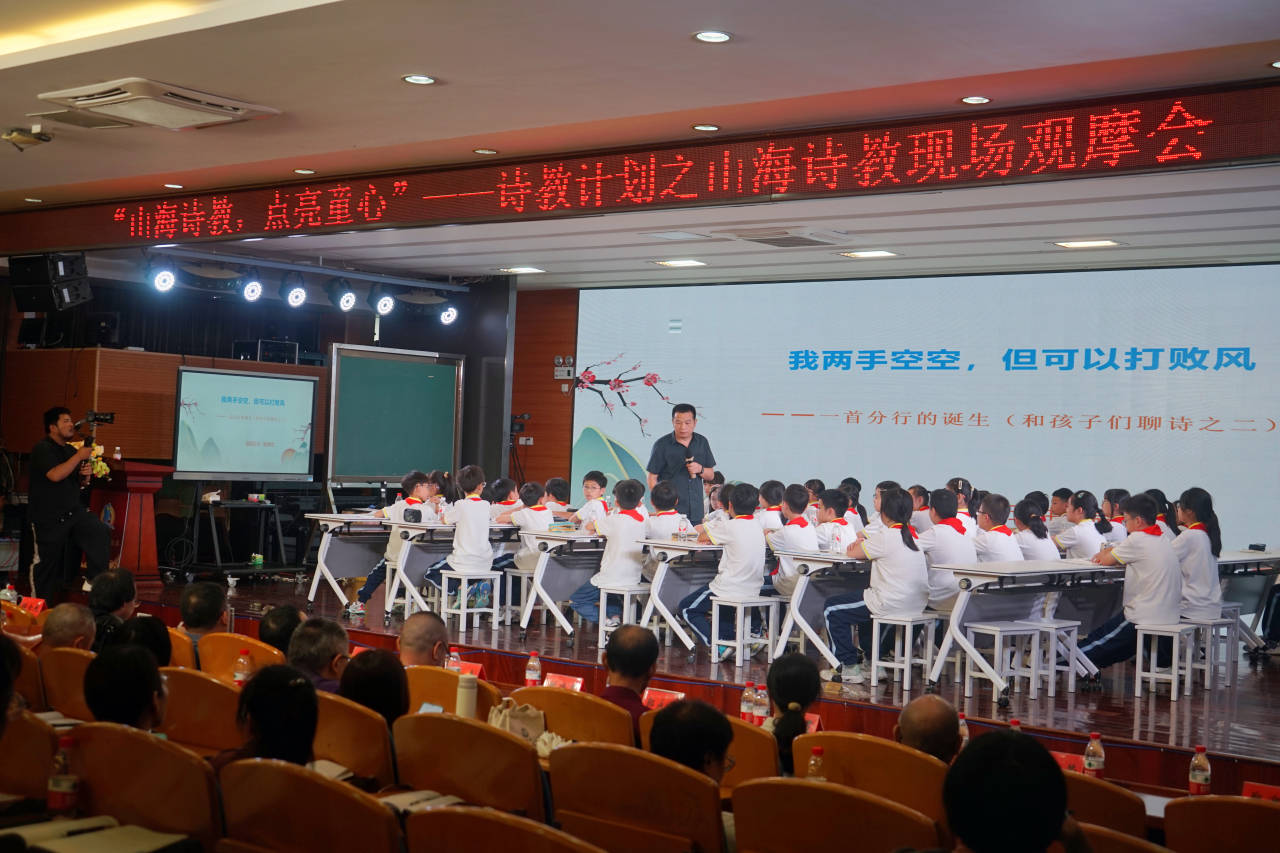 诗歌,具有独特的意蕴和美感。在观摩会现场,两堂别出心裁的诗教课让人印象深刻。在老师的带领下,台上的孩子和台下的观众一同驰骋于诗歌的世界,体验诗歌的魅力,感受诗歌教育的力量。