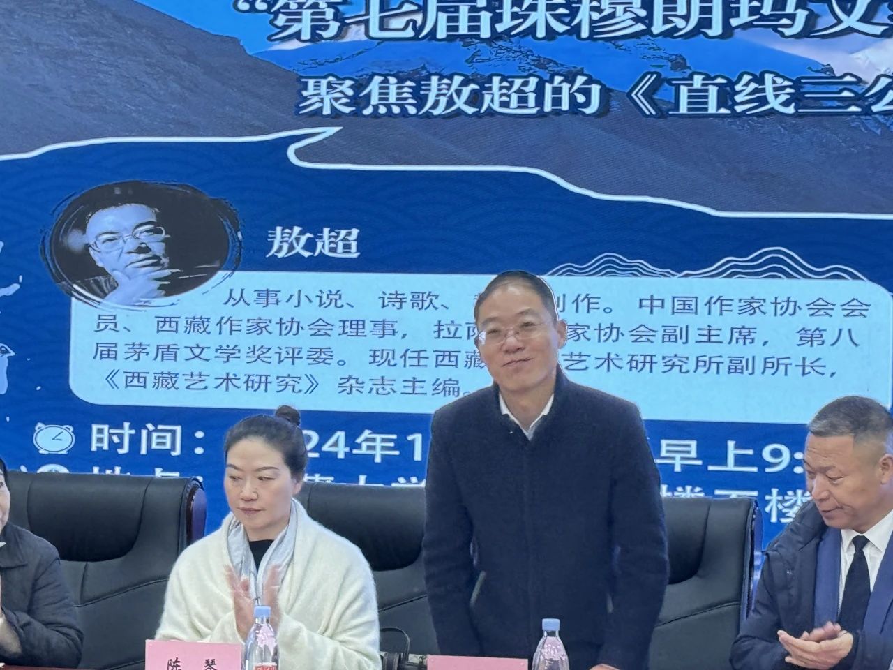 2024年11月2日上午,为“推动文化创新源泉充分涌流、文化创造活力持续迸发”,由西藏大学党委宣传部指导、西藏大学文学院主办,中国文艺评论(西藏)基地、国家四部委筑牢中华民族共同体意识研究基地、中华民族共同体研究院、西藏文学评论家协会、西藏文学编辑部举办的聚焦敖超的《直线三公里》暨刘萱的《西藏三章》论坛在拉萨成功举办。相关领导和区内高校师生、西藏大学文学院师生100多人参加了论坛并现场互动,气氛热烈,收获颇丰。