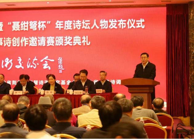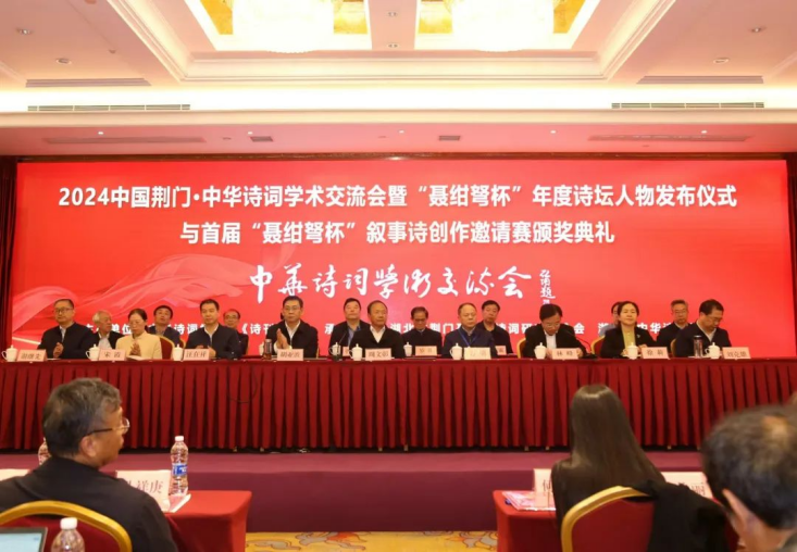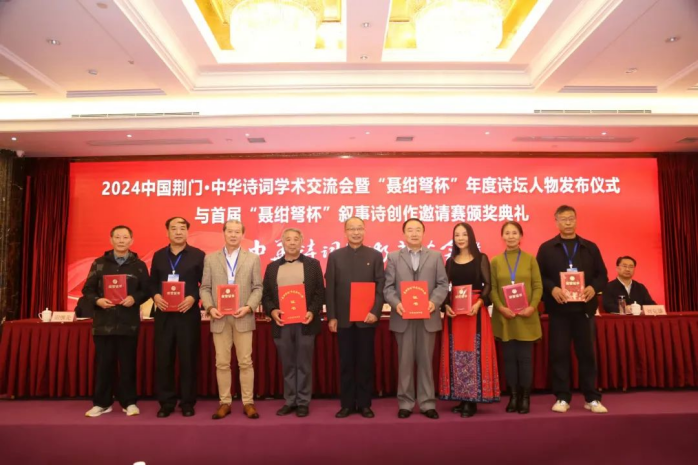 “路入荆门晓色新,细风轻雾淡微尘。”时逢全国上下认真学习贯彻党的二十届三中全会精神和习近平总书记考察湖北重要讲话精神之际,为弘扬传承中华优秀诗词文化,坚定文化自信,坚持守正创新,贯彻落实《“中华诗词精品年”工作方案》,2024年11月11日至14日,由中华诗词学会、《诗刊》社主办,湖北省荆门聂绀弩诗词研究基金会、湖北省中华诗词学会承办的2024中国荆门·中华诗词学术交流会暨“聂绀弩杯”年度诗坛人物发布与首届“聂绀弩杯”叙事诗创作邀请赛颁奖典礼在湖北省荆门市举办。