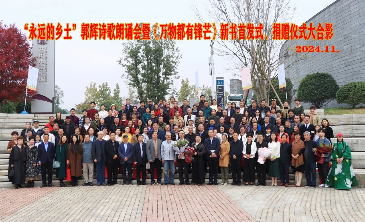为强化文学对社会进步的推动作用,纵深推动文学之乡建设的多样化、常态化,11月9日至12日,由中国诗歌学会、益阳市文学艺术界联合会担任指导单位,《散文诗》杂志社主办,益阳市文化馆承办,益阳大明机械有限责任公司、益阳市福建商会、羽星宾馆协办的“永远的乡土”郭辉作品研讨会、诗歌朗诵会在湖南益阳举行。