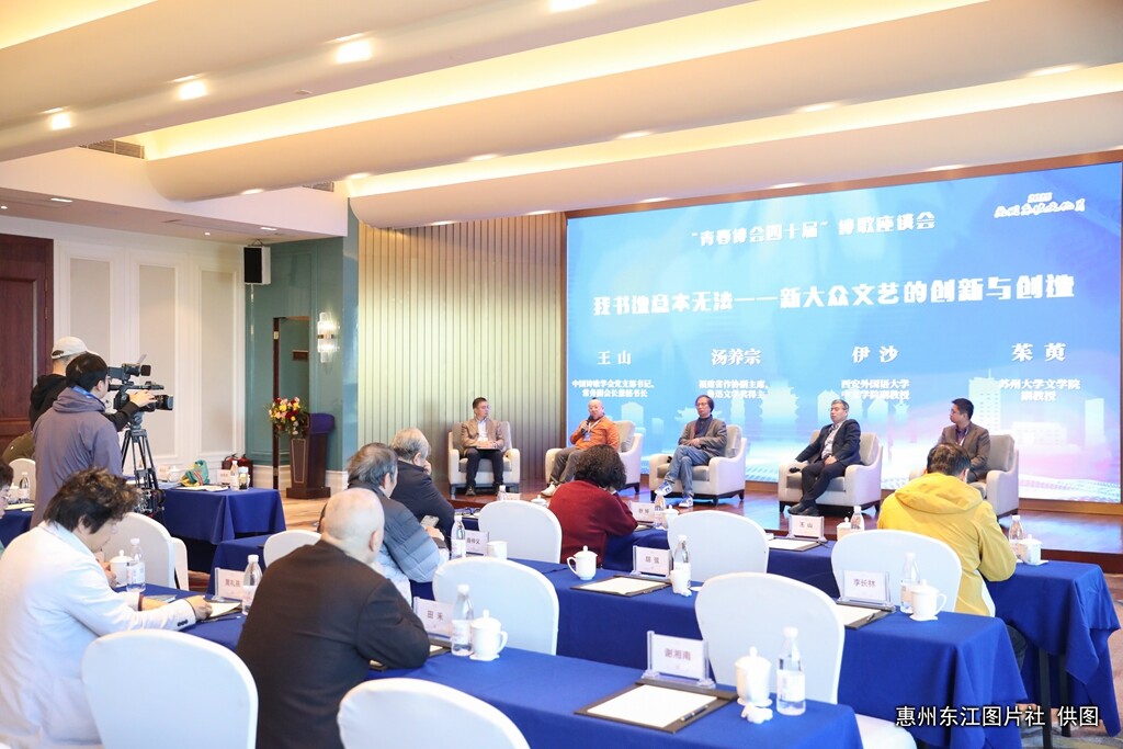 1月13日,来自全国各地的60余位诗坛大咖齐聚惠州,围绕“青春诗会四十届·致敬诗歌和理想”主题,分别以不辞长作岭南人——苏东坡在惠州的人生与创作、我书造意本无法——新大众文艺的创新与创造、笑时犹带岭梅香——当代女性诗人的机遇与选择、爱听风味说南方——新南方写作的未来与想象、寄语青春强健客——当下青年写作的责任和可能等5个话题进行交流,分享青春诗会的美好记忆,畅谈诗歌的现状和未来。这是一场中国诗歌界与惠州文脉的邂逅与互动,也是当代新诗与古典诗歌的对接与碰撞。