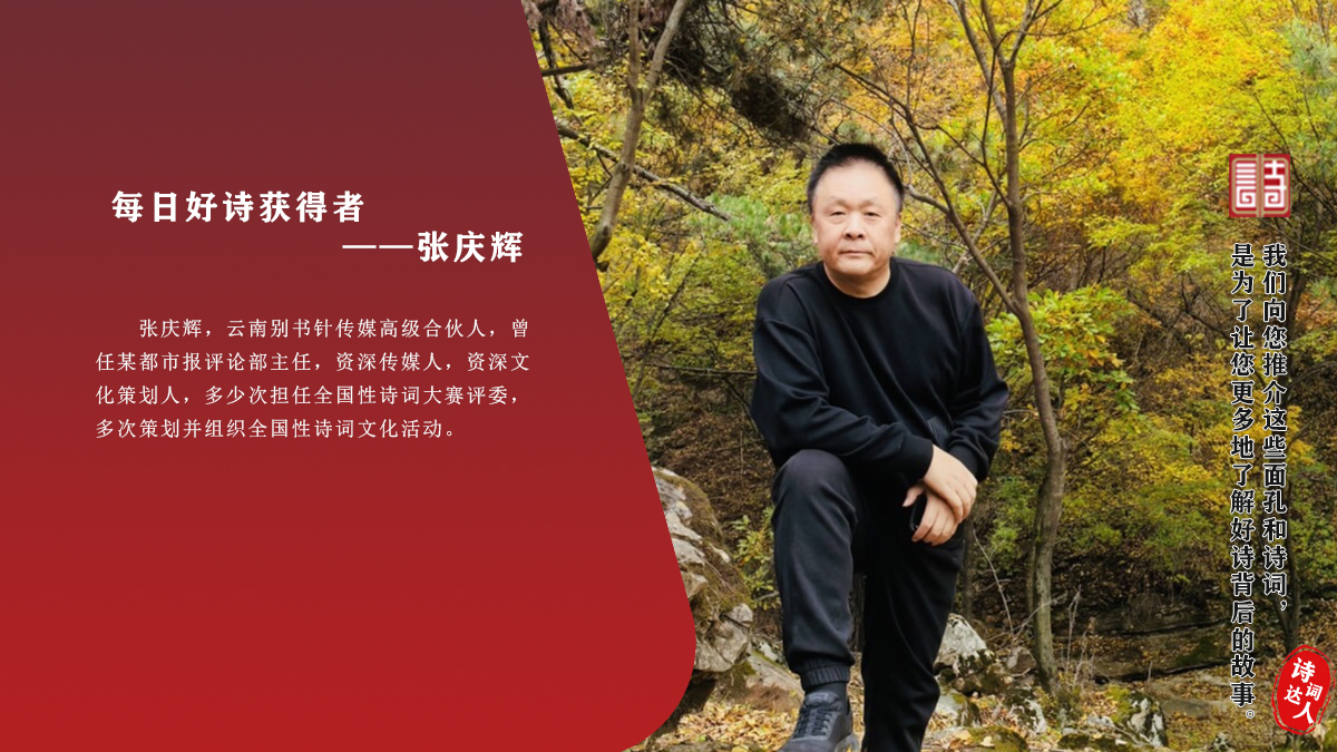 张庆辉 云南别书针传媒高级合伙人,曾任某都市报评论部主任,资深传媒人,资深文化策划人,正始吟社创社社长,长青诗社顾问。