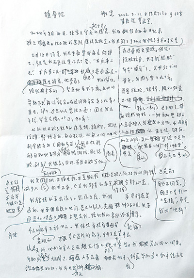 2022年3月11日,谢冕住院期间写作《换骨记》的手稿
