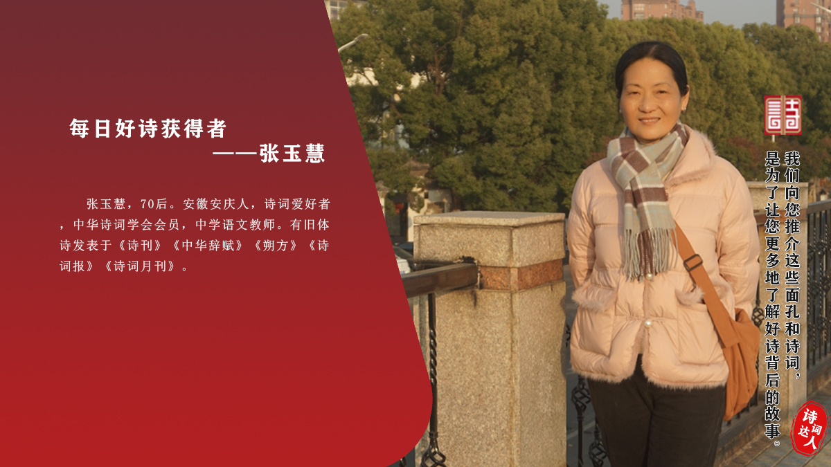 张玉慧 70后。安徽安庆人,诗词爱好者,中华诗词学会会员,中学语文教师。有旧体诗发表于《诗刊》《中华辞赋》《朔方》《诗词报》《诗词月刊》。