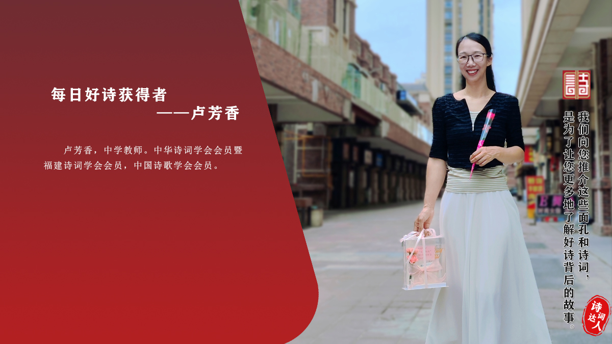 卢芳香 笔名汐水,福建平潭第三中学教师。中华诗词学会会员暨福建诗词学会会员、中国诗歌学会会员。