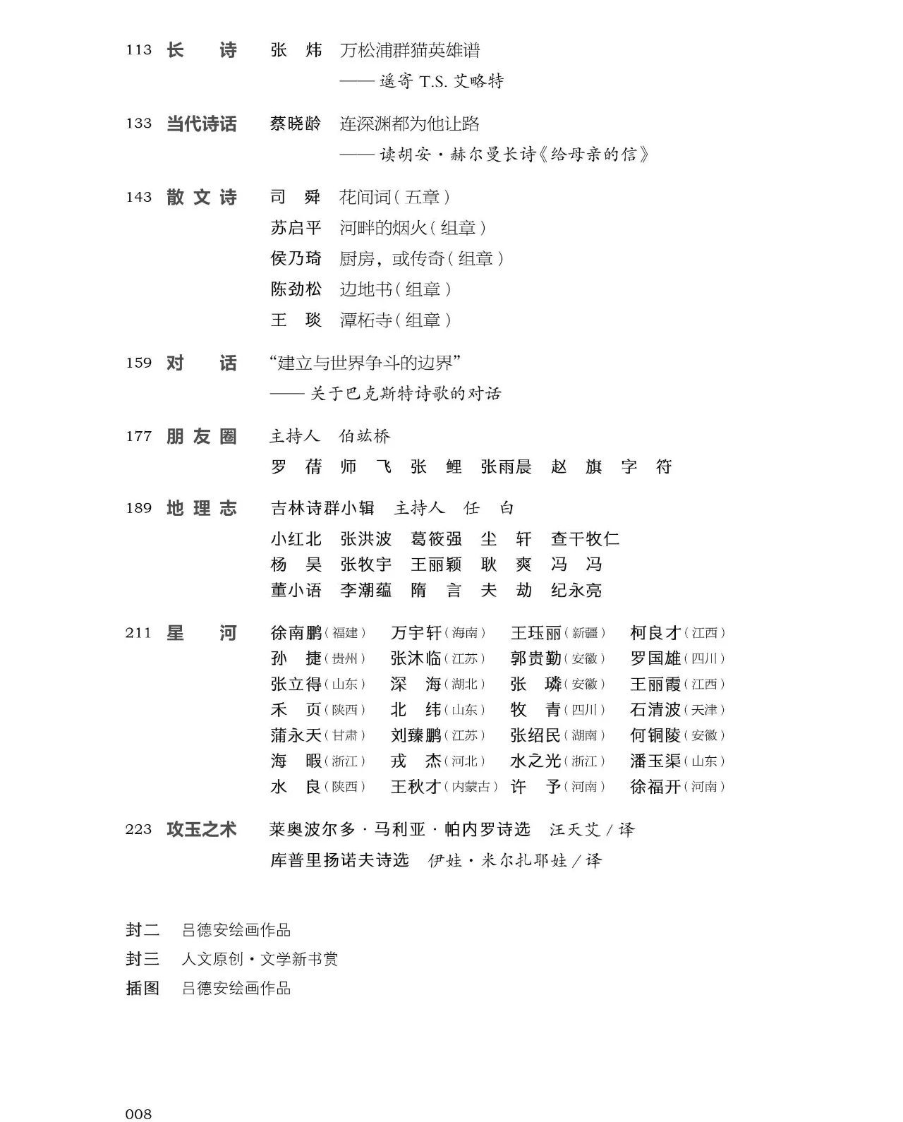 诗刊 | 中华辞赋 | 当代·诗歌 | 星星 | 诗歌月刊 | 诗潮 | 草堂 | 江南诗 | 诗选刊 | 上海诗人 | 作家 | 山花 | 福建文学