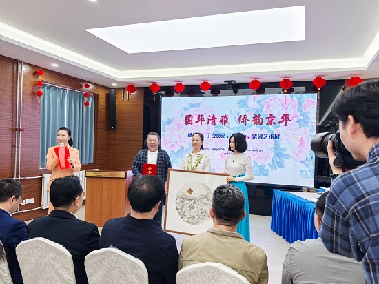 5月10日,一场由北京市东城区侨联主办,北京市华侨服务中心支持的“国华清雅·侨韵京华”——“侨之家”杨清茨、丁良贵诗、书、画、紫砂艺术展,于北京市东城区魏家胡同9号隆重开幕。中国侨联副主席程学源,中国作协军事文学委员会副主任刘笑伟,作家出版社总编张亚丽,北京市侨联党组书记周景晓,中国侨联文化交流部副部长郭启华,北京市侨联副主席洪鑫,东城侨联党组书记李娟等出席开幕仪式。