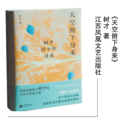 供职于中国社科院外文所的树才,不仅是优异的法语诗歌译者,也是一位出色的诗人。此外,树才还投身于“儿童诗教”工作,以及国际层面上的诗歌交流活动。师从著名学者郭宏安的树才,受过扎实的学术训练,对中西方的各种文学理论与思潮都颇为熟悉,但是,树才始终没有写出“学者之诗”;作为中国当代最重要的法语诗歌译者之一,树才于2008年和2023年分别获得法国政府颁发的“教育骑士”勋章和“艺术与文学骑士”勋章,但是,他也没有写出“译者之诗”。也就是说,作为诗人的树才,他似乎始终游离于他的“本职”工作之外,坚持不懈地在“自己的道路上”探索语言和心灵,写他渴望写出的诗。翻开《天空俯下身来》,我们就能知道,树才写诗始于上世纪80年代,他的创作生涯长达四十年,但是,树才的诗歌写作却始终同各种姿态各异的诗歌运动保持着距离。这样的“旁观者”姿态,使得树才的写作探索,在保持“不离场”的同时,更好地保证了诗的“在场”。