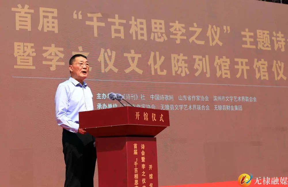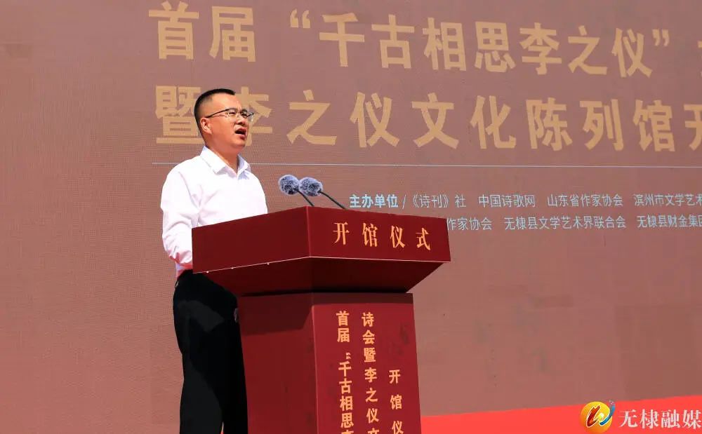 5月28日,首届“千古相思李之仪”主题诗会暨李之仪文化陈列馆开馆仪式在无棣古城举行。中国作家协会副主席徐贵祥,《诗刊》主编、著名诗人李少君出席并讲话。《诗刊》原主编、著名诗人叶延滨,《诗刊》副主编王冰出席。省作家协会党组书记、副主席赵艺丁出席并讲话。市委常委、宣传部部长冷兴邦,市文联党组书记、主席苏洪德出席。市委常委、副市长,县委书记屈跃宽出席并致辞;县委副书记、县长王涛出席并主持;县委副书记窦彭波,县政协党组书记、主席张恩传出席活动。
