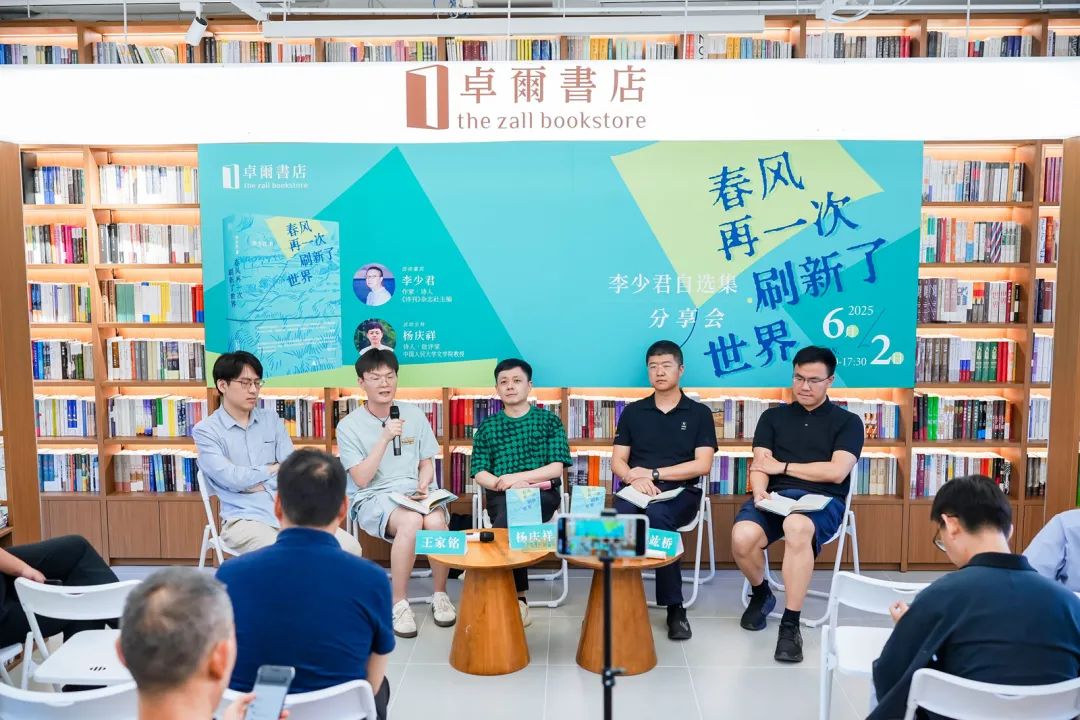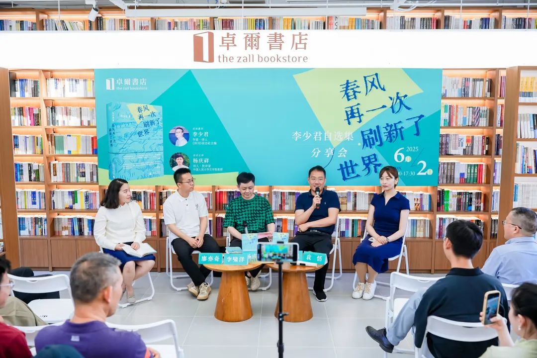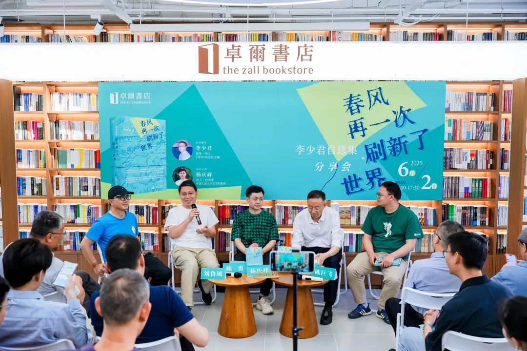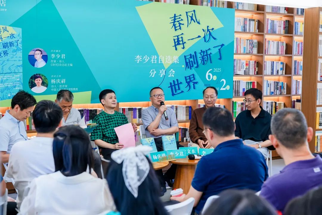 春风犹寄梦,夏意已成诗。6月2日,李少君自选集《春风再一次刷新了世界》分享会在卓尔书店北京店举行。诗人、评论家杨庆祥主持活动,《诗刊》社主编李少君与敬文东、汪剑钊、陈均等二十余位作家、诗人、批评家齐聚,围绕李少君的创作历程、诗歌艺术特色及其对当代诗坛的贡献展开深度对话,触摸文字里跳动的山水脉搏,感受被春风再一次刷新的世界的明亮、蓬勃与诗意。