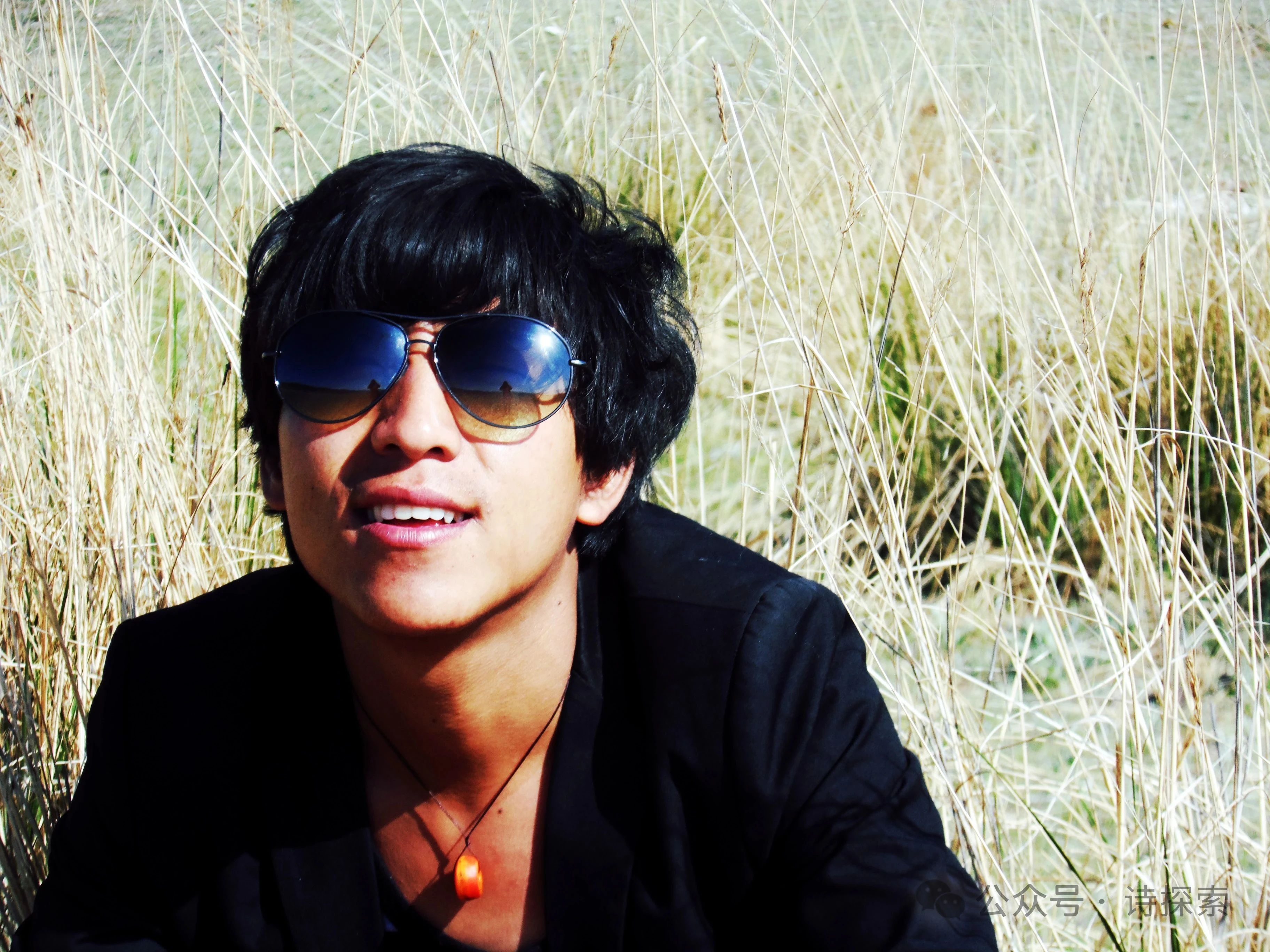 青海湖畔,用墨镜涂黑天空