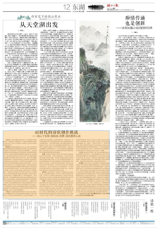 汤天勇:其实以deepseek为代表的人工智能全面发展,对我们学术研究和学术编辑的挑战最大,它以强大的算力为基础,直接冲决我们学术人个体的思维阈限。但对于诗歌创作而言,AI时代的来临,既不能回避、拒斥,也不能纯粹拿来。前者实则是对人类文明新动向、新方向的无知与虚无,我素来认为诗歌创作是分级的,有高大上的高原型创作,也有面对普罗大众的通俗性创作,只有各个层级的诗歌都能得到发展,这才是新时代的文艺。AI此时对于诗歌创作而言,其工具性能够得到充分彰显,尤其是对处于塔基的诗歌爱好者而言,可以借此辅助自己完成情感、思想、情绪的交流与表达。对于处于塔基的诗人,AI也具有工具性,它是规避同质化的有效手段。另外一层意思是,人工智能确实给我们原创性带来一定风险,但取代人类智慧也是有难度的。人工智能是人类智慧创造下的结果,只要人类还是人类,还具有灵长性,就能在与AI的博弈中不丢失主动权,因为人类也在成长,未来已来,未来未来,我们可以警惕自我的物化、惰性,将AI作为人类文明发展的代表,但是为我所用的代表。