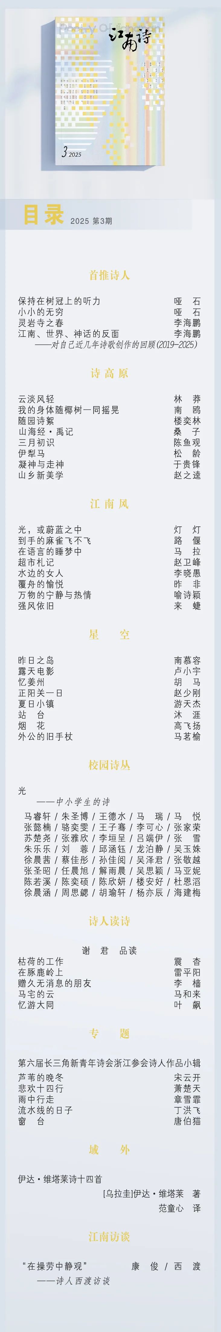 《上海诗人》2025年3期目录