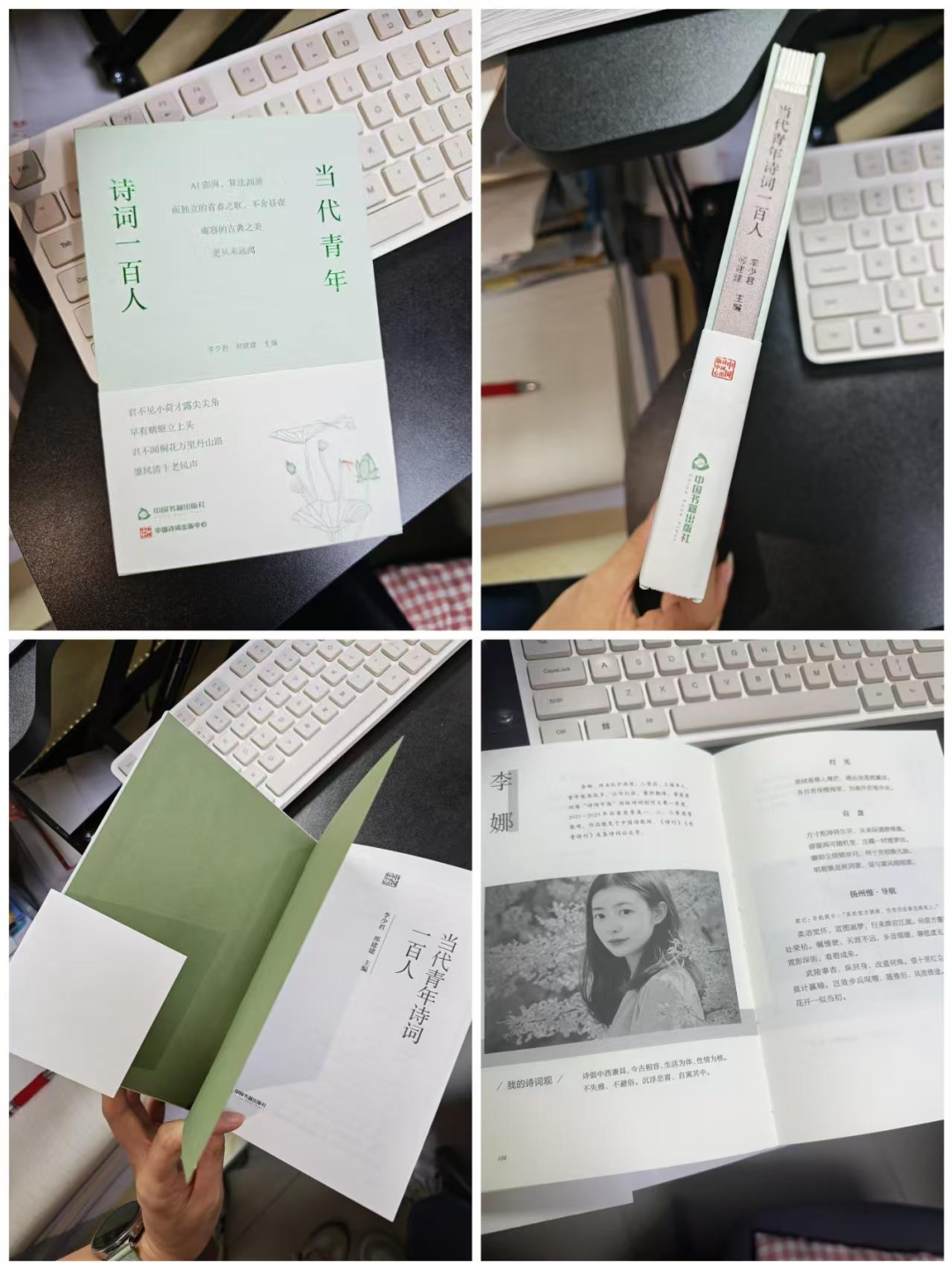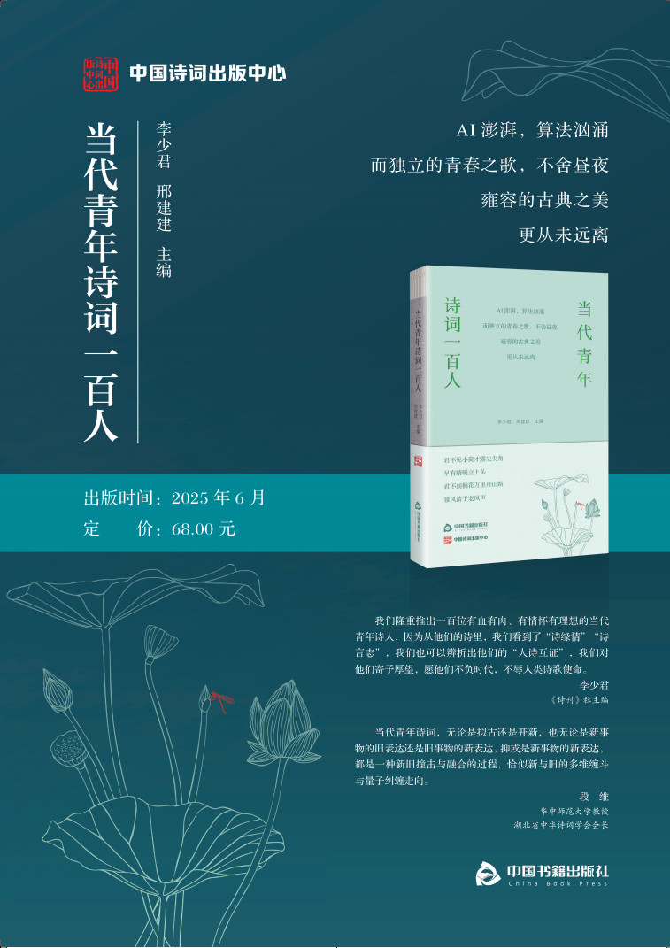 有鉴于此,由中国书籍出版社与《诗刊》杂志社联袂打造的中国诗词出版中心共同策划、编选了这部《当代青年诗词一百人》,希望在AI技术狂潮的席卷之下,能看到一场以青春为马、以原创为旗的诗词逆袭,希望藉此汇聚古典诗词的青春力量,记录传统格律的时代表达,正如诗刊社主编李少君在序言里所提到的——“之所以隆重推出这一百位有血有肉、有情怀有理想的当代青年诗人,是因为从他们的诗里,我们看到了诗缘情、诗言志,我们也可以辨析出他们的人诗互证,我们对他们寄予厚望,愿他们不负时代,不辱人类诗歌使命。”而在本书的编纂过程中,我们也实实在在地感知着一百位青年及其作品的思想深度、艺术广度与时代温度,在他们的诗行里,既有“莫倚高楼笑棚户,高低一一是苍生”(《即目示儿》刘斌)这般对社会现实的深刻观照,也有“红是华人血,黄是子孙名”(《水调歌头·见黄陵古柏有怀》李如意)中炽热赤诚的家国情怀,而“水花深处正飞梭,原是青春唤我”(《西江月·打水漂》邢建建)“倾收夜色还倾舞,独占秋风又独吟”(《复至天堂寨》陈巨飞)“苦恨声声啼难学,叹夜来、误尽谈天舌。无数事,共花说。”(《金缕曲》李昊宸)等诗句,则细腻勾勒出个人生命体验中的浪漫与思索,尽显青春的灵动与诗意。他们以细腻的笔触,用平仄与韵律记录泛舟湘湖的悠然、与友小聚的欢欣、夜半还乡的情怯......将古典诗词的形式美与现代生活的鲜活体验巧妙融合,让古典诗词焕发出新的生机,成为当代青年与世界对话、表达自我的独特语言,展现出传统文化在新时代语境下的无限可能。