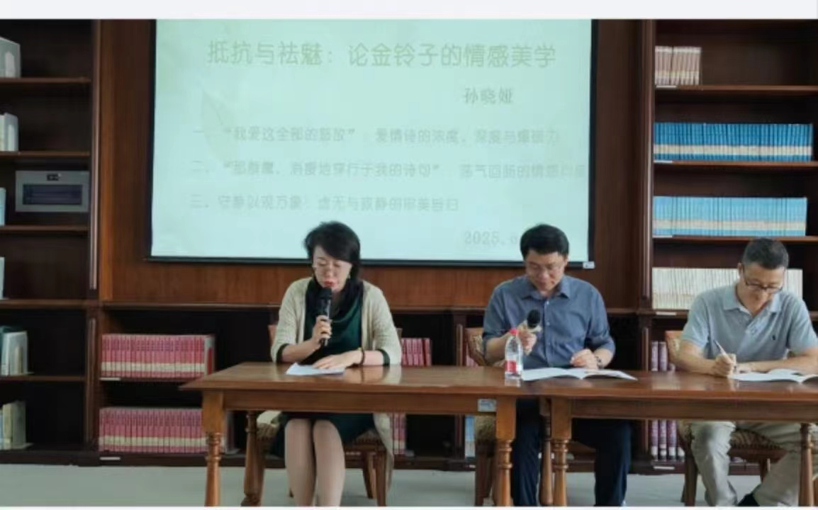 首都师范大学博士生导师、评论家孙晓娅以“抵抗与祛魅:论金铃子的情感美学”为题以分析了金铃子诗歌中对生命、自然和人性的独特观察与表达;她说,金铃子是当代重庆女诗人的杰出代表,其诗歌创作既扎根于女性经验,又超越性别局限,以独特的语言锐度、意象嫁构和生命哲思,在当代女性诗歌谱系中形成了极具辨识度的美学风格。情感特质:在传统与先锋之间,对撞与矛盾修辞中,以女性视角切入,却摒弃了约定俗成的表达,祛魅了世俗之见,消解性别的规训,直击情欲本质。情感经验独特,富有张力、悖论和情感反差,既浓郁奔放又冷凝睿智,既炽烈率真又节制深邃,既寂静虚无又流动富有冲击力,欲望的挑动,又犀利的省思。她的爱情诗穿行性别与超性别的裂缝中,刺穿情诗的面纱。从质疑与确定、毁灭与重生、沉溺与超脱的裂隙中走出,最终指向一种不妥协的美学革命,为当代汉语爱情诗开辟了充满痛感与憧憬的路径。以直率冷峻之笔,颠覆女性感性、"情绪化"的刻板标签。作为诗书画三栖资深艺术家,其诗多有跨界书写,视觉动感鲜明,她将书法线条的流动感融入诗歌节奏,善于处理画面的裁剪与留白。将画面的移动与身体叙事熔铸,形成通感风暴。为当代女性诗歌提供了一种不妥协的。她的诗歌的气场很有辨识度:流转的动、爆破的力,自寂的静。