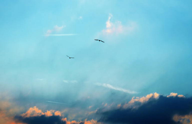 风缱绻,水温柔,闲云逐浪共沉浮。忽逢鹭影穿霞去,载得诗心没远舟。