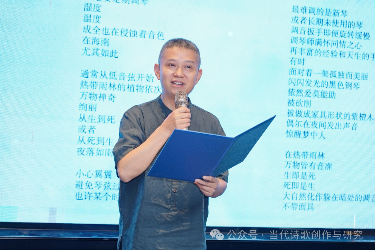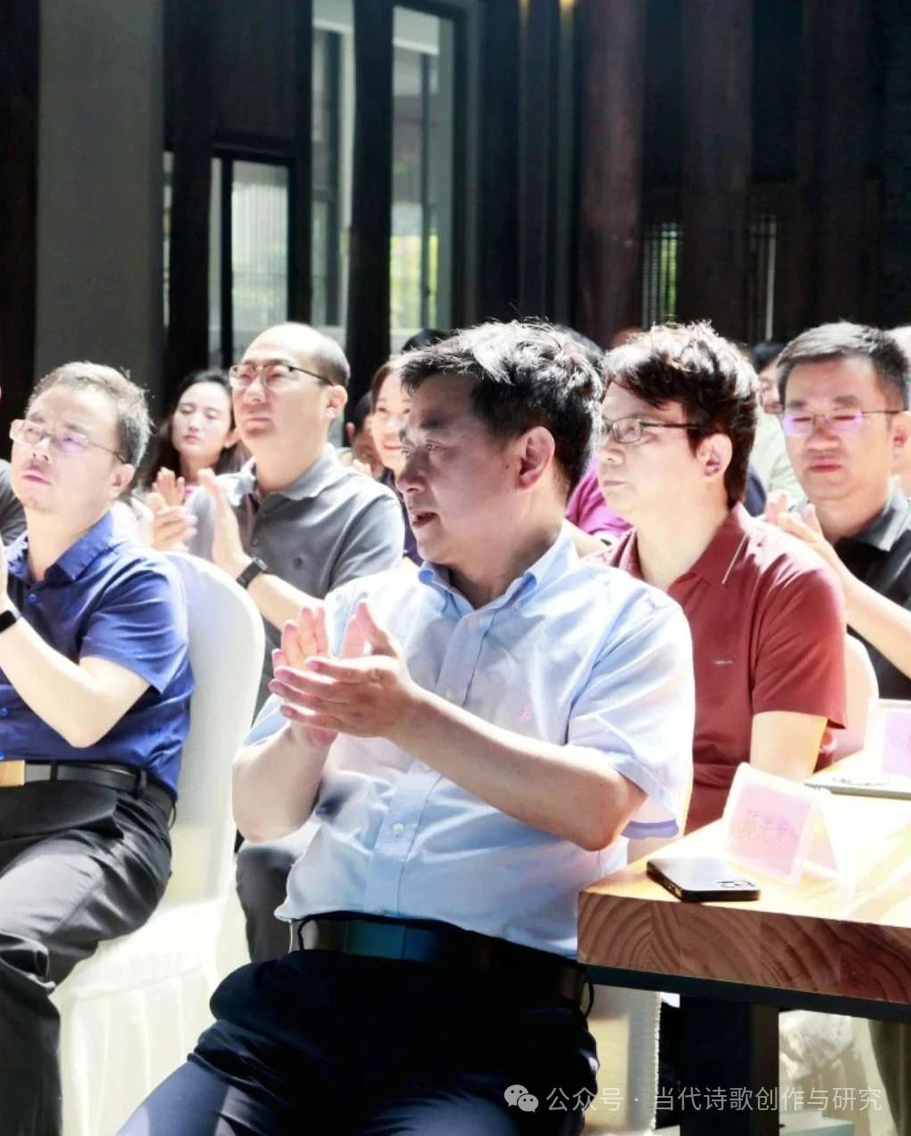 诗会期间,金石开担任学术主持,与会诗人围绕“山水间的诗意栖居与现代化表达”的论题进行了深入探讨,认为诗意在工业化中后期流失严重,诗意与现代化并不相悖,完全可以相得益彰,关键在于发现、营造与引领。在新形势下诗人必须真正深入生活,面对日新月异的世界,深入思考,努力创新表达形式,用新题材、新角度、新语言、新意象,书写不负时代的诗歌作品。30位与会诗人分别发言。