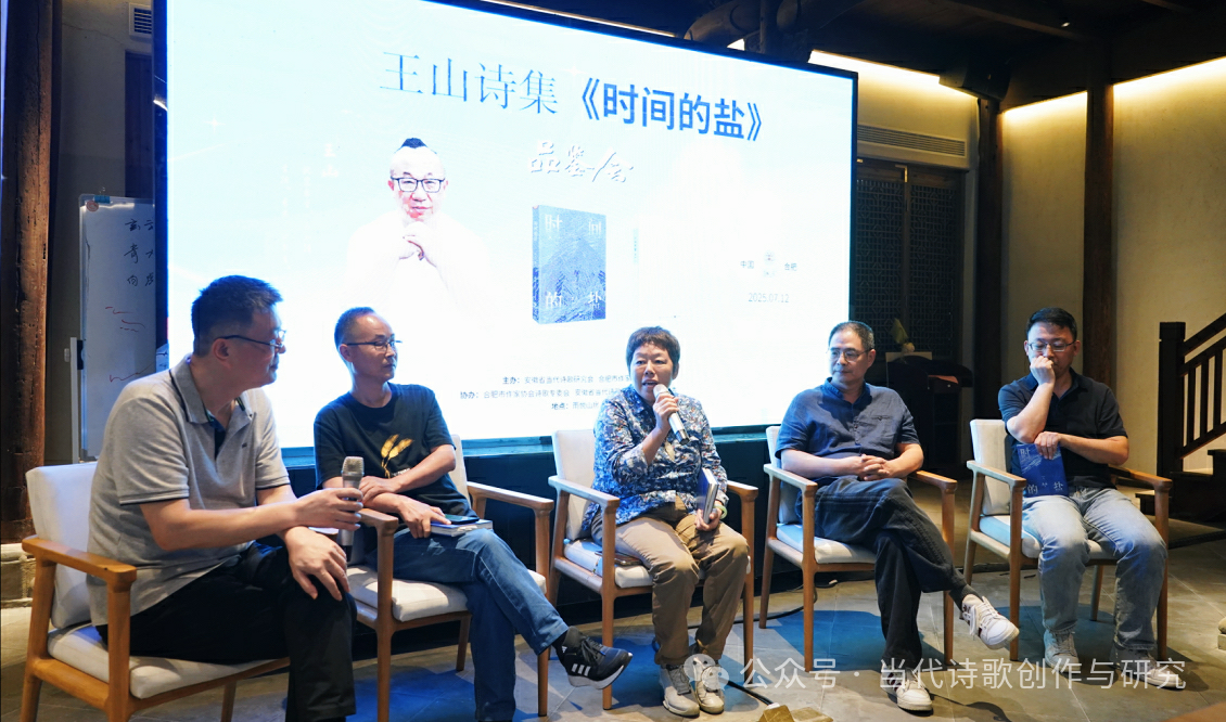 巢湖水波光粼粼,四顶山郁郁葱葱。7月12日,诗人王山诗集《时间的盐》品鉴会,在古典、雅丽、徽派的合肥雨悦山房芴玉堂举行。品鉴会由安徽省当代诗歌研究会、合肥市作家协会与雨悦山房共同举办。该诗集由中国大百科全书出版社出版,收录了诗人近年来创作的70首诗作。