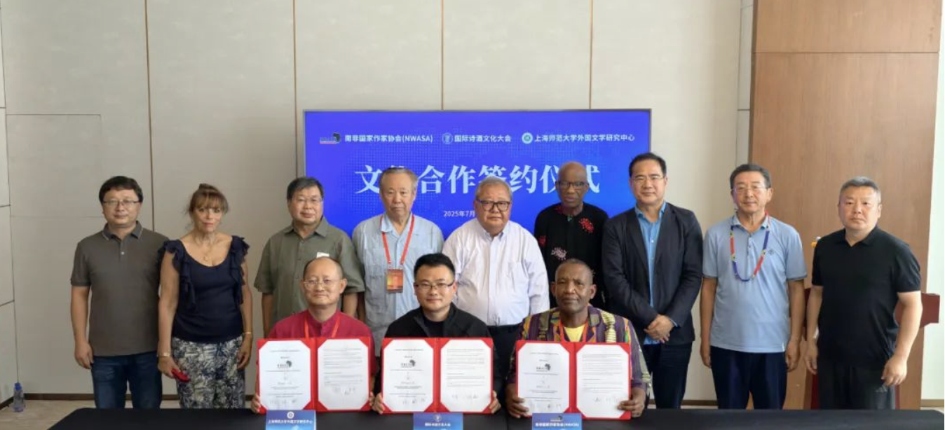 上海师范大学外国文学研究中心、南非作家协会国际、国际诗酒文化大会组委会签约仪式