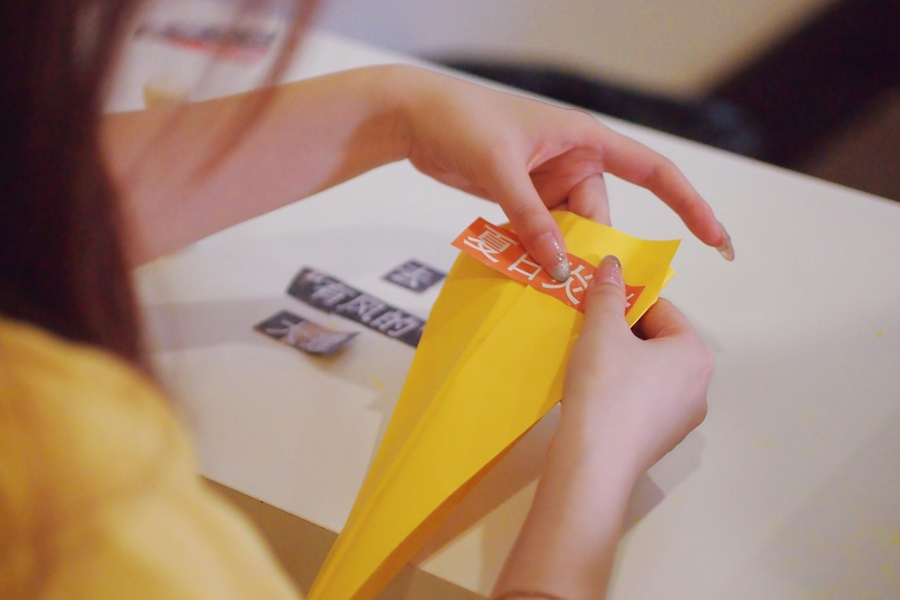 展览的尾声,“去有风的地方”板块以轻盈灵动的姿态,为整个疗愈之旅画上句号。“诗歌风铃”随风轻响,“诗歌风车墙”流转着色彩与光影,营造出一种超脱世俗的轻松氛围。“情绪拼贴诗互动装置”前,读者可以脑洞大开,从旧报刊中剪下心仪的字句,拼贴成一首首独一无二的诗篇,再将纸飞机投掷入“情绪泳池”,象征着心绪的自由飞翔与纾解。