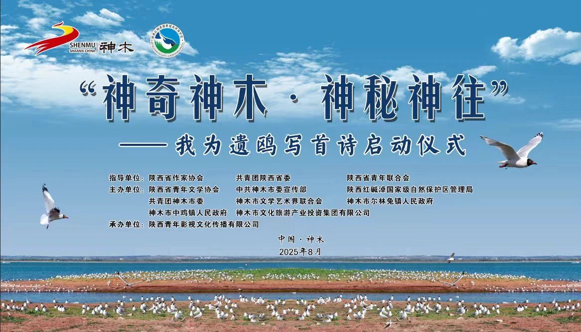 8月17日,由陕西省作家协会、共青团陕西省委、陕西省青年联合会指导,陕西省青年文学协会、中共神木市委宣传部、陕西红碱淖国家级自然保护区管理局、共青团神木市委、神木市文学艺术界联合会 、神木市尔林兔镇人民政府、神木市中鸡镇人民政府、神木市文化旅游产业投资集团有限公司主办,陕西青年影视文化传播有限公司承办的“神奇神木·神秘神往——我为遗鸥写首诗”活动启动仪式在神木市陕西红碱淖国家级自然保护区举行。