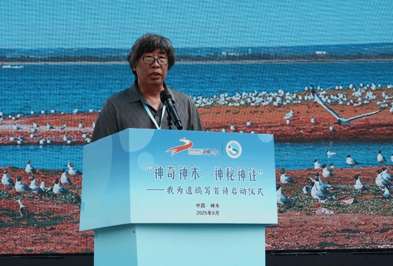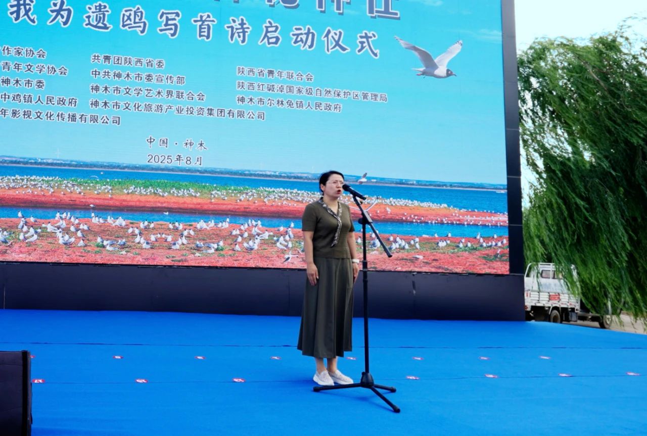 阎安指出,陕西文学的传统向来是扎根大地,关注现实,像路遥、陈忠实、贾平凹等陕西作家通过文字记录社会发展、反映人民心声,把对自然、对生命、对时代、对人类的理解融入作品。神木是陕西大地神奇与发展的生动体现,同时也是陕西省青年文学协会的发源地,这里不只是地理上的一个坐标,更是陕西当代文学精神的沃土。他希望通过本次活动能够用诗歌告诉世界,在陕西有这样一片土地,它叫神木;有这样一汪湖水,它叫红碱淖;有这样一群生灵,它叫遗鸥。它们是陕西大地的骄傲,是诗歌永恒的灵感,更是人类与自然和谐共生的见证。生态保护是事关长远的大事,也是全世界、全人类的文学主题,期盼能够以此活动为契机,书写自然之美,为推动生态文明建设贡献诗歌的力量。