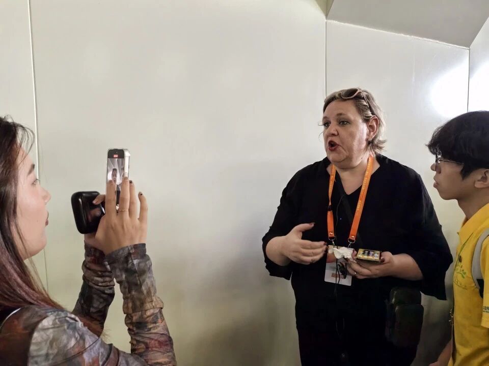 阿根廷诗人埃琳娜·安妮巴利接受记者采访。