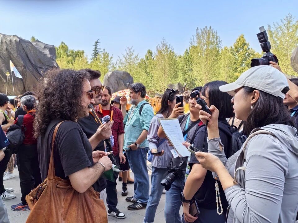 阿根廷诗人巴勃罗·卡查季安、马克西米利亚诺·莱尼亚尼接受记者采访。