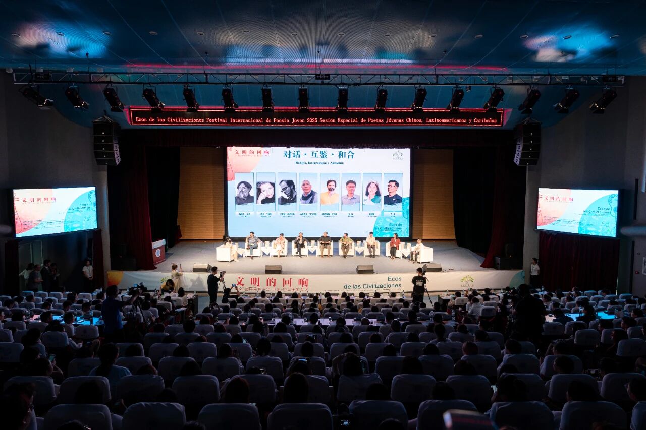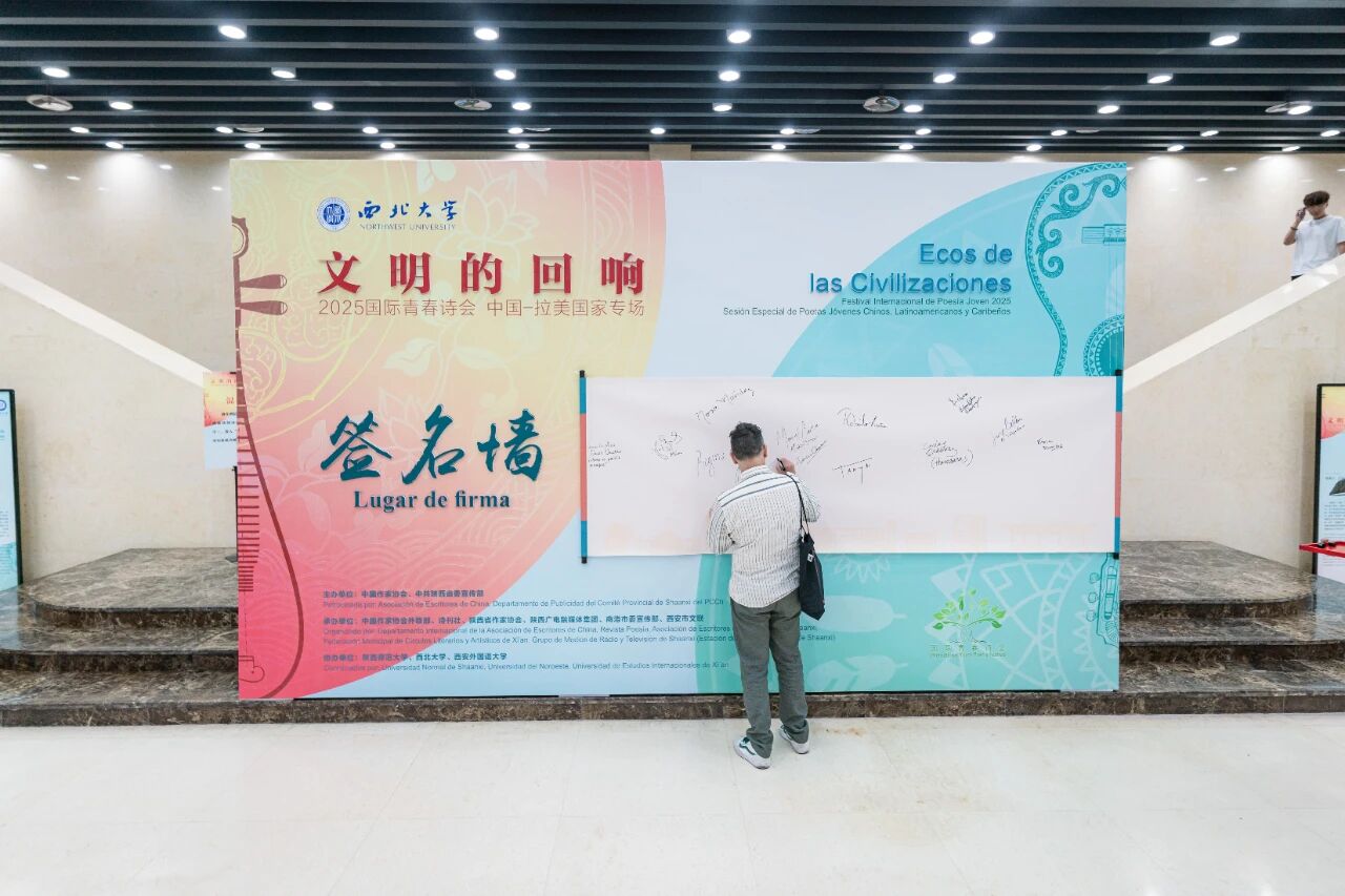 9月16日下午,由中国作家协会、中共陕西省委宣传部主办的“2025国际青春诗会(中国-拉美国家专场)”诗歌交流活动在西北大学举办。来自智利、萨尔瓦多、洪都拉斯、墨西哥、乌拉圭等国家的14位拉美诗人、12位中国诗人以及校内外专家、文学爱好者,在百廿学府展开了一场跨越语言与文化的诗意对话。此次青春诗会以“文明的回响”为主题,激发出不同文明的回响与共振。