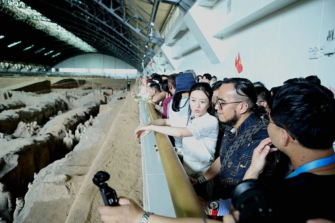 诗会聚群贤,乘兴游长安。秋日的西安因诗歌而更热烈,9月15日,参加“2025国际青春诗会(中国—拉美国家专场)”的中外诗人们走进秦始皇帝陵博物院与长安十二时辰主题街区参观体验,沉浸于中国历史的恢宏气象与深厚底蕴,进一步加深了对中华文明的认识和理解。