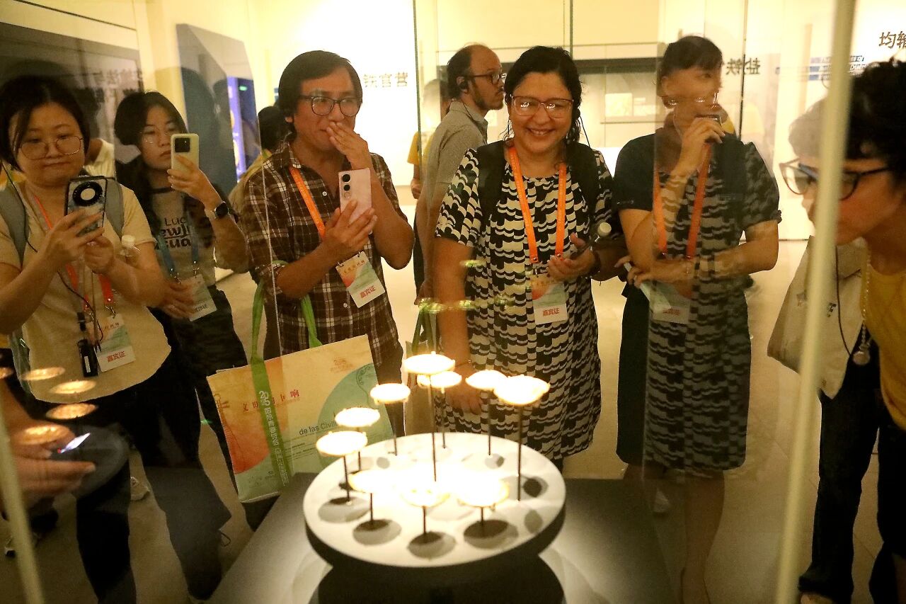 9月16日,参加2025国际青春诗会(中国—拉美国家专场)的中外诗人们来到陕西历史博物馆秦汉馆,参观了“天下同一——秦汉文明主题展”。大家从多元而具体可感的历史藏品中,了解中国的历史和文化,领略中华文明的独特风采。