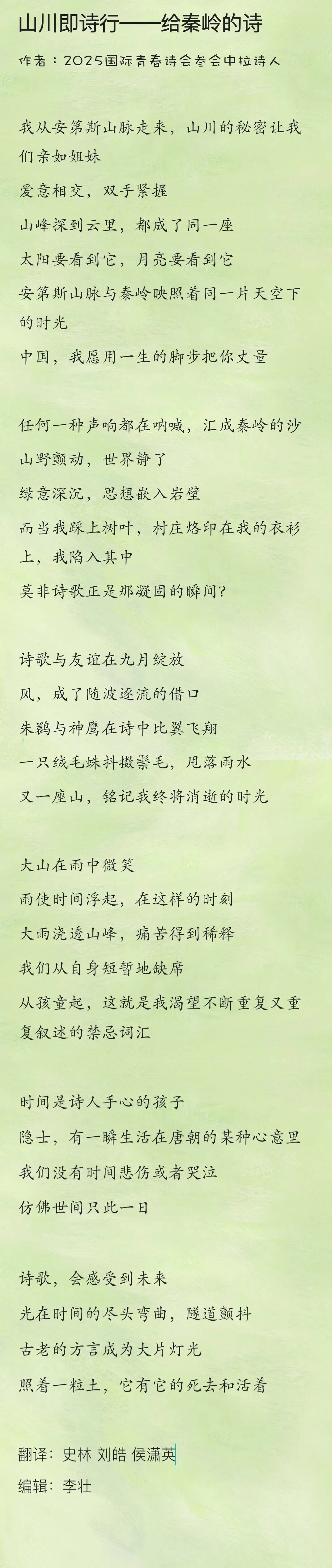 “山川即诗行——给秦岭的诗”留下各国诗人的诗句
