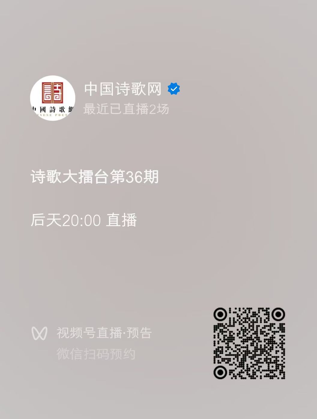 在中国诗歌网视频号直播欢迎广大诗友预约观看!