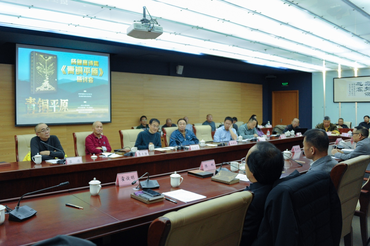 2025年10月31日,由中国作家协会《诗刊》社、四川省作家协会创作研究室联合主办,四川人民出版社,中共什邡市委、市人民政府,四川传媒学院中华传统文化学院,四川大学文旅康养校友会协办的“杨健鹰诗集《青铜平原》研讨会”在中国现代文学馆隆重举行。中国作协党组成员、书记处书记何向阳,中国作协创联部主任黄国辉,《诗刊》副主编霍俊明,作家出版社副总编辑徐峙,四川省作家协会副秘书长黎正明,以及刘立云、王久辛、曹宇翔、大解、胡弦、罗振亚、王国平、李壮、赵依、王学芯、杨碧薇、何晓坤、李东海、吕历、刘波、王士强、聂权、蓝野、寇硕恒、王其进等著名诗人、评论家、高级编辑出席研讨会。作者家乡四川省什邡市委常委、宣传部长陈林受市委书记晏世莹委托带领什邡代表团专程赴京参会。