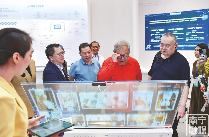当天上午,文艺家们走进聚焦数智科技发展的南A中心。南A中心围绕“国家所需、广西所能、东盟所盼”,按照“北上广研发+广西(南宁)集成+东盟应用”的发展路径,打造面向东盟开展人工智能创新合作的“公共服务门户、交流展示窗口、运营管理中枢、资本赋能平台和产业链衔接枢纽”。