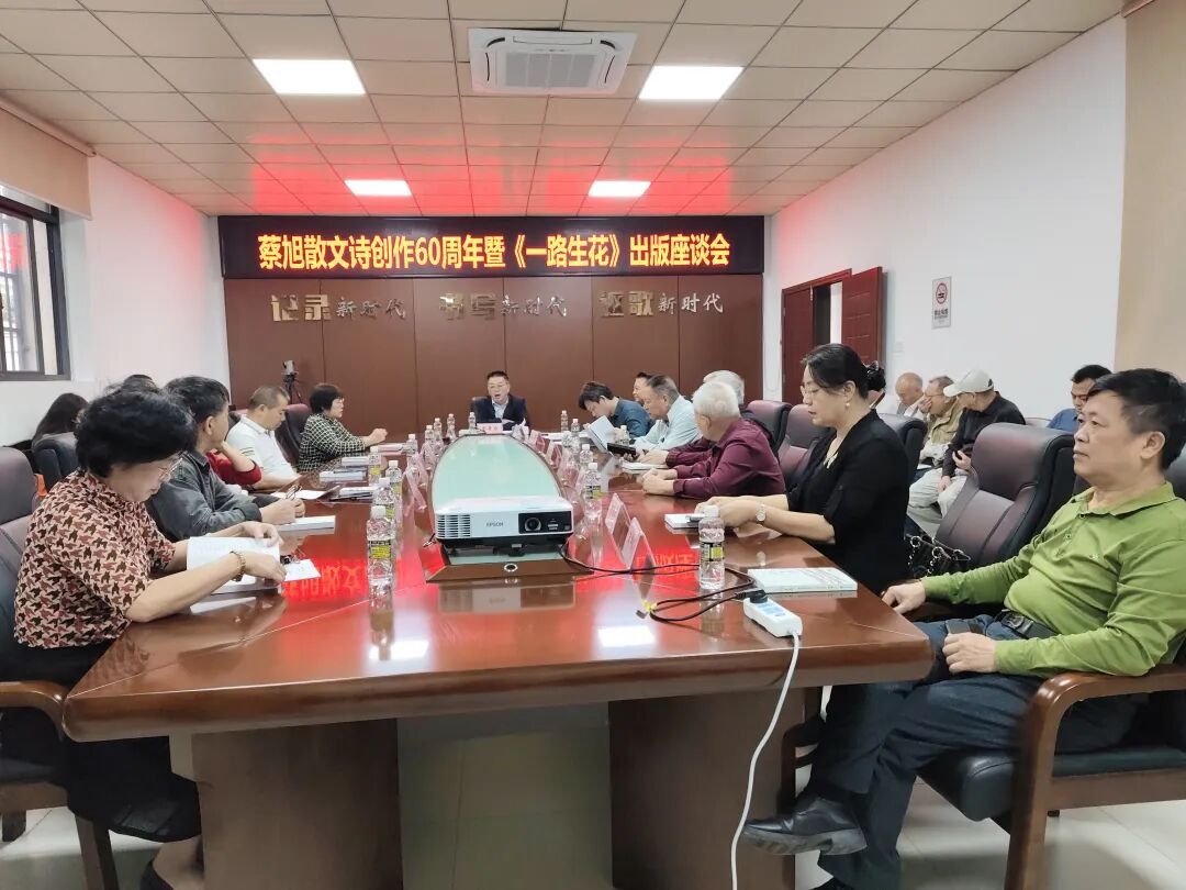 11月15日,“蔡旭散文诗创作60周年暨《一路生花》出版发行座谈会”在海口市文联会议室成功举行。各界文学艺术工作者、专家学者及媒体代表齐聚一堂,共同庆贺著名散文诗人蔡旭先生孜孜不倦创作散文诗六十周年,并对其新作《一路生花》的出版表示祝贺,现场气氛热烈,赞誉如潮。座谈会由海口市作家协会主席黄辛力主持。