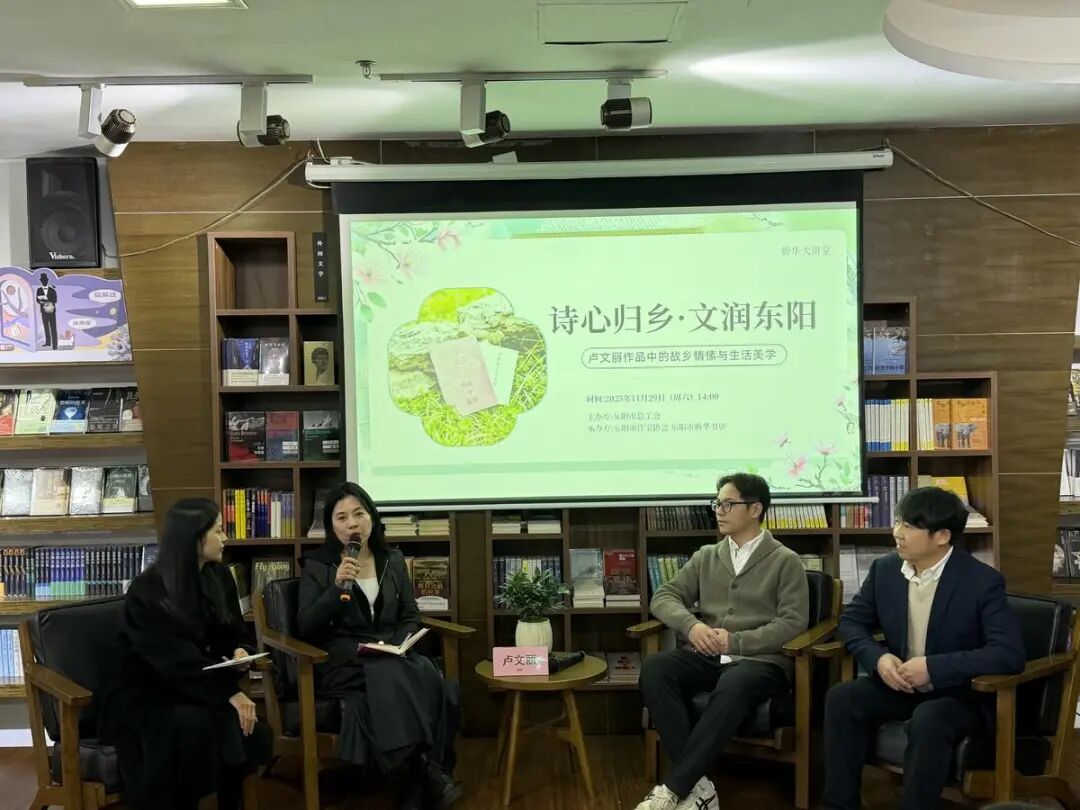 一缕书香,温暖了一座城。11月29日下午,由市总工会主办,市作家协会和市新华书店承办的“诗心归乡·文润东阳”活动在东阳书城举行。东阳新华书店内座无虚席,暖意融融。杭州作协副主席、一级作家卢文丽携新作《劳作与花开》《只衔花气与多情》回到故乡东阳,与读者分享作品中的故乡情愫与生活美学,为东阳的文学爱好者们带来了一场精彩的思想与文学盛宴。