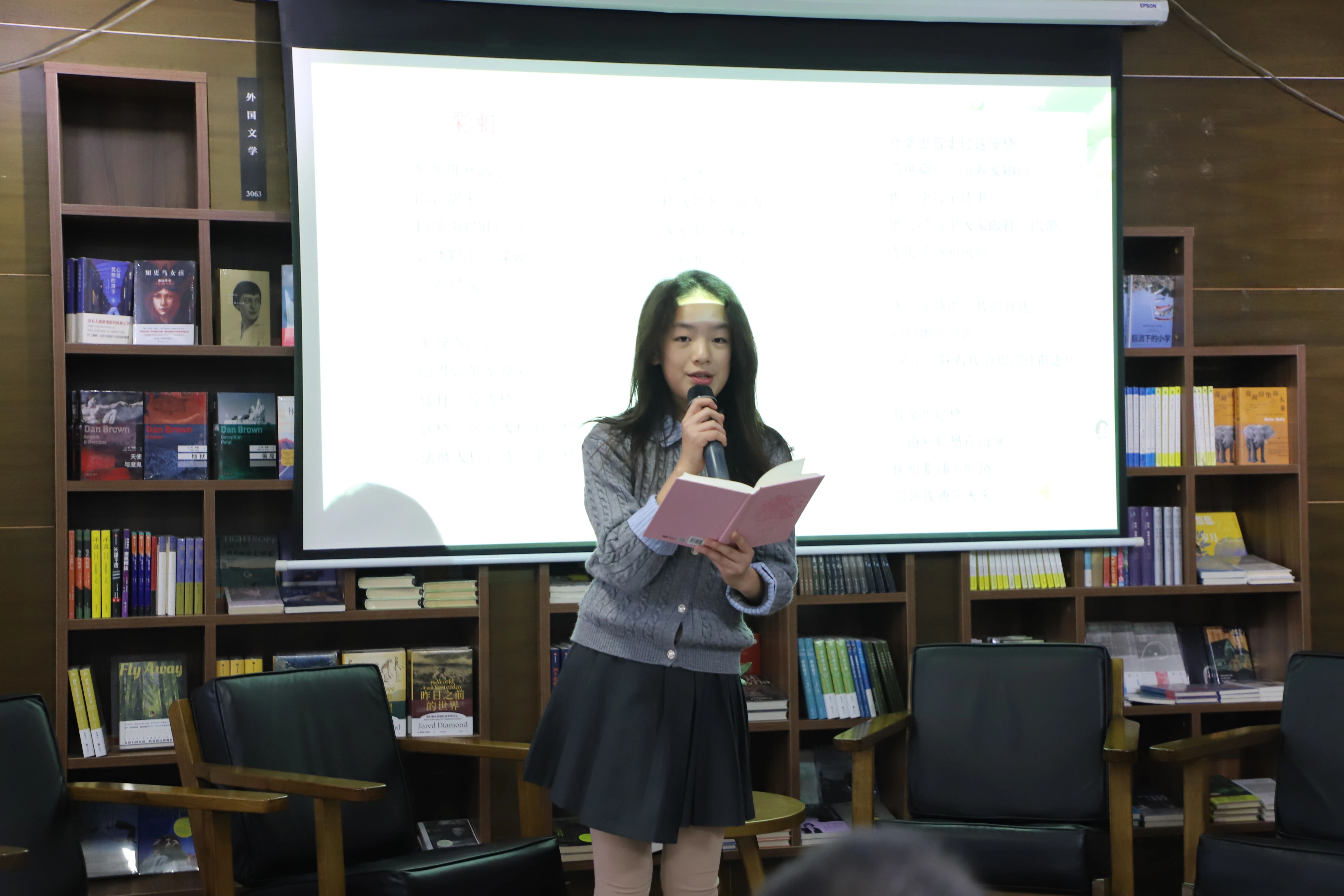 随后,浙江省首批正高教师、省语文特级教师陈益林老师,小学语文一级教师、东阳市作家协会会员常诚老师,城东斯村小学向滢蓓同学,第二实验小学刘宇冰同学等读者依次朗诵了书中诗作。朗诵声情并茂,将文字转化为动人的声音艺术,让现场观众沉浸在诗意的氛围中。