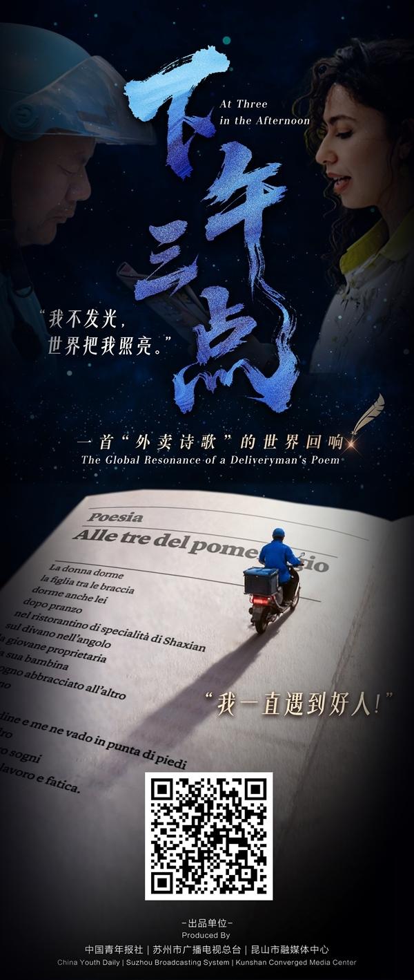 一位是从意大利远道而来的留学生,一位是来自中国出身草根的“外卖诗人”,两个原本不会有交集的人,因为《下午三点》这首诗,成为跨越国界的朋友。