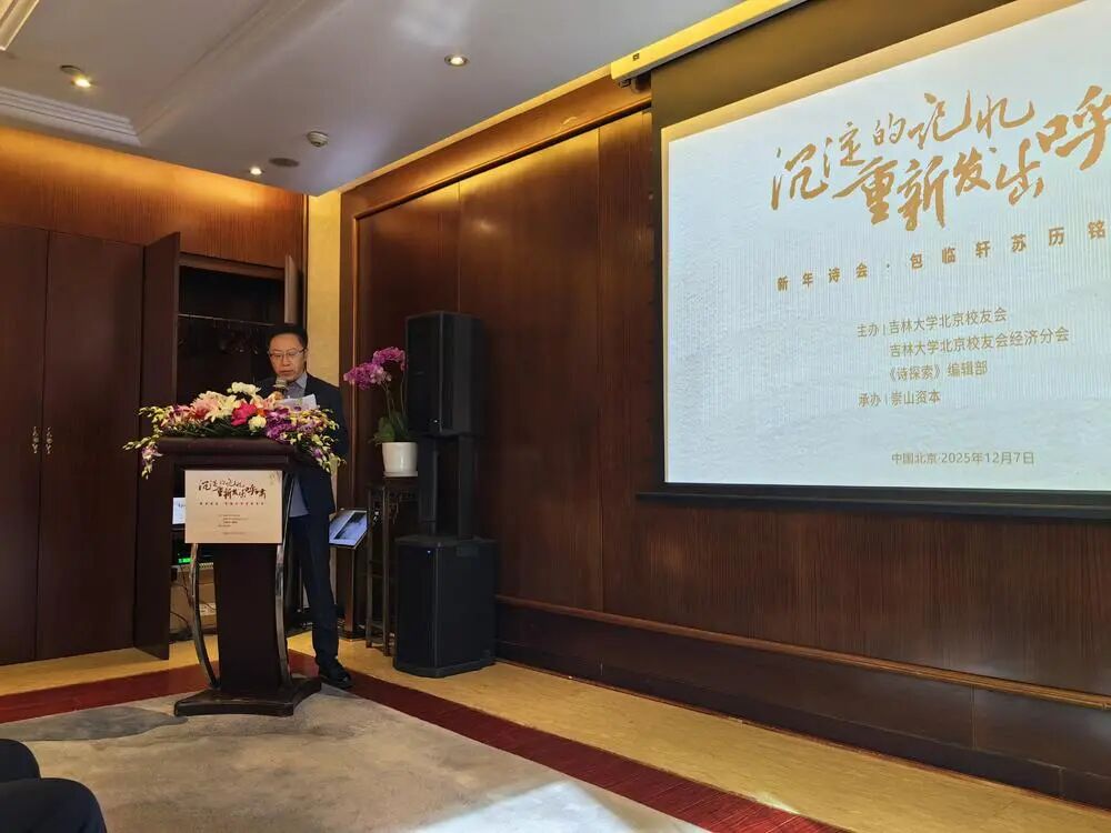 岁聿云暮,雅聚京华。12月7日,由吉林大学北京校友会及经济分会联合《诗探索》编辑部、崇山资本主办的“沉淀的记忆重新发出呼啸”新年诗会——包临轩、苏历铭专场在北京圆满落幕。70余位吉大校友、文坛贤达与各界挚友齐聚一堂,以诗为桥回溯青春岁月,共品文学醇香。
